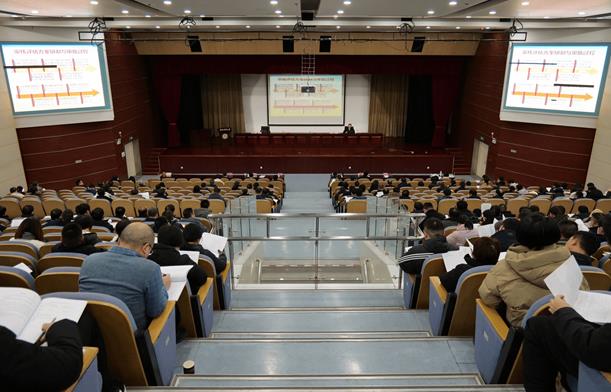 本网讯 12月26日上午,学校召开本科教育教学审核评估培训会。会议邀请国家督学、国家教学名师、大连理工大学原副校长李志义教授做专题培训。校领导李红、韩军、陈文兵、操海群、吴祥为出席会议。全校中层干部、基层教学组织负责人、专业负责人、教学秘书参会。