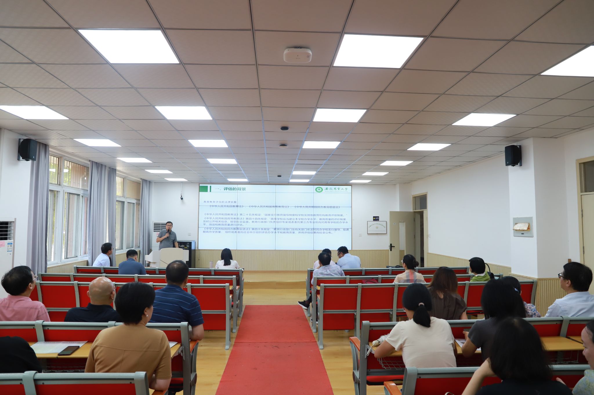 加快本科人才培养高质量发展》为题,从“评估的背景、新一轮本科教育教学审核评估特点和变化、背景意义组织实施、审核评估实施情况、线上与入校主要工作”五个方面和学院全体教师作了深刻阐释,进一步明确了工作要求。他表示,全体教师要在“一根本、两突出、三强化、五个度”的工作目标指引下,统一思想认识、确定评估方案、搭建组织机构、落实评建任务、划分评估阶段、开展自评自建,以评估思想理念引导改革,以评估要点指标推动改革,以评估政策资源支持改革,全方位、高质量做好本科教育教学审核评估相关工作落实。