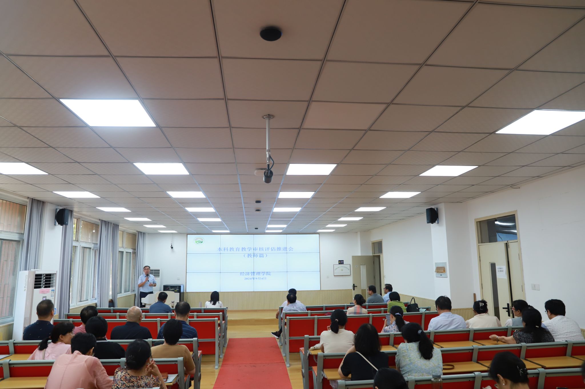 9月4日下午,经济管理学院本科教育教学审核评估工作专题推进会在经管楼103会议室召开。学院班子成员及全体教职工参加会议。会议由副院长田涛主持。