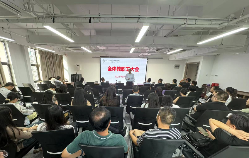 本网讯 8月30日下午,学院在1009活动室召开新学期教职工大会,学院领导班子成员、全体教职工参加。