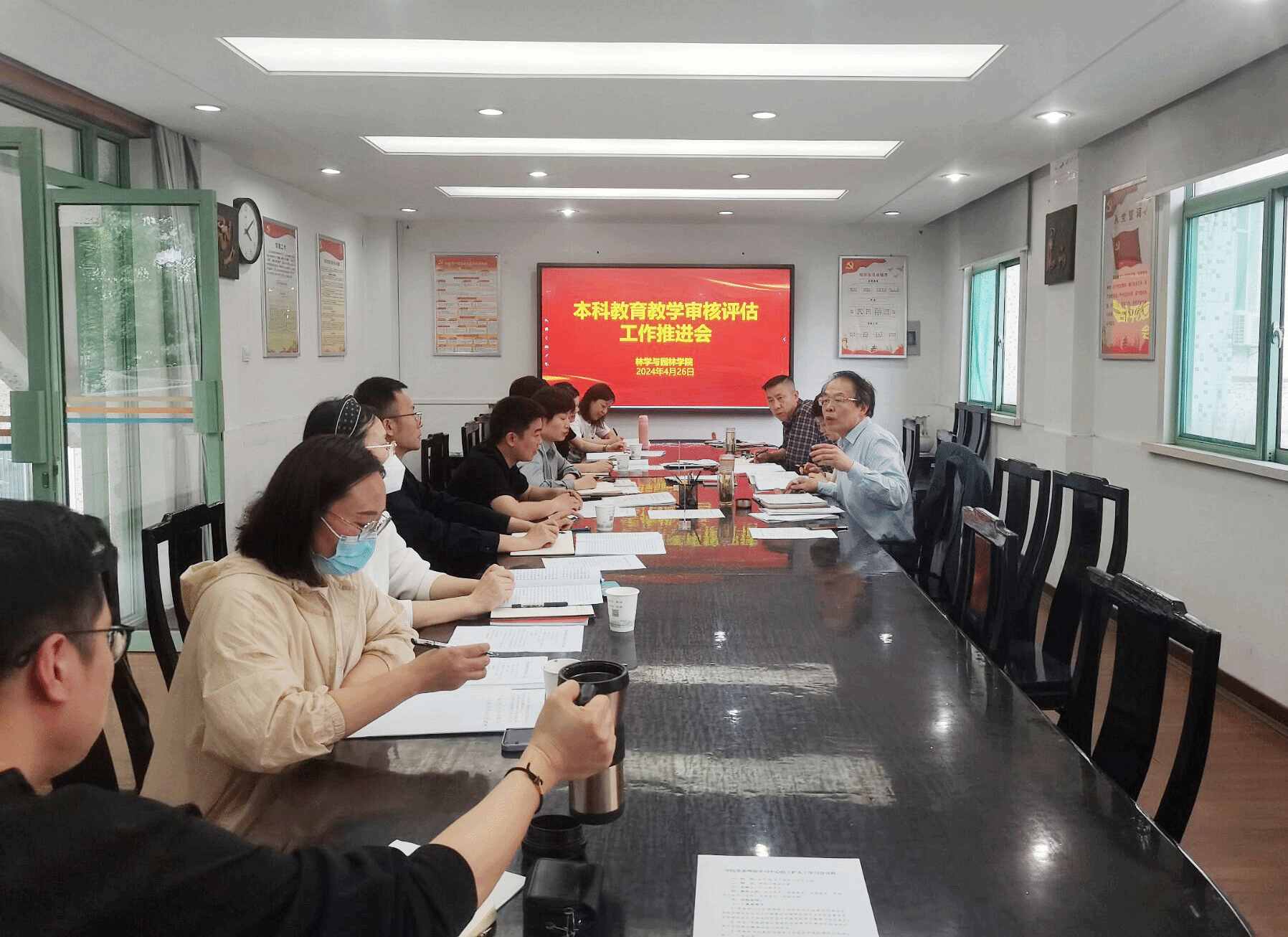 本网讯 4月26日,林学与园林学院在林学楼二楼会议室召开专题会,持续推进本科教育教学审核评估工作。学院领导班子成员、系部主任参会,会议由学院党委书记江正君主持。