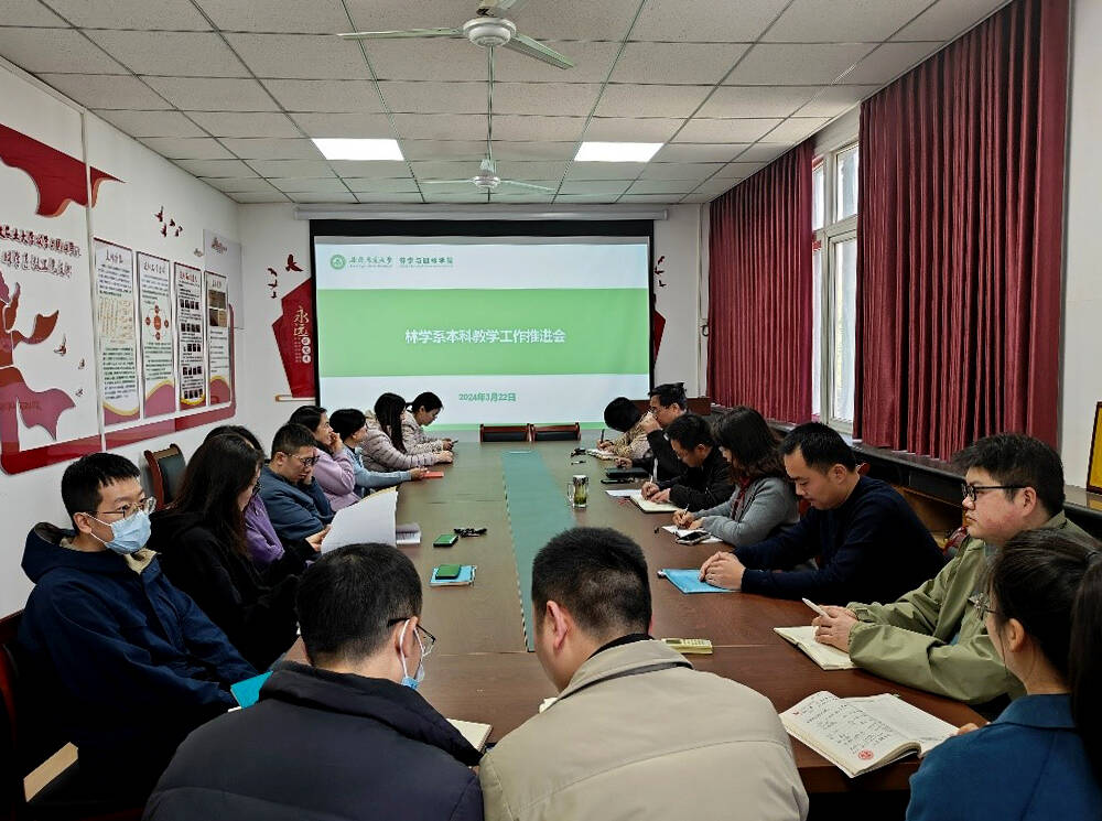 本网讯 为强化本科教育教学改革和专业内涵建设,落实立德树人根本任务,高质量通过新一轮本科教育教学审核评估,推动高水平林学专业建设,3月22日上午,林学系在林学楼409会议室召开人才培养方案修订、本科教育教学评估、微专业设置申报以及“十四五”规划教材申报等相关工作布置会。林学系全体教师参加会议,系主任唐雪海主持会议,林学系教工党支部书记王滨同志布置了相关工作。