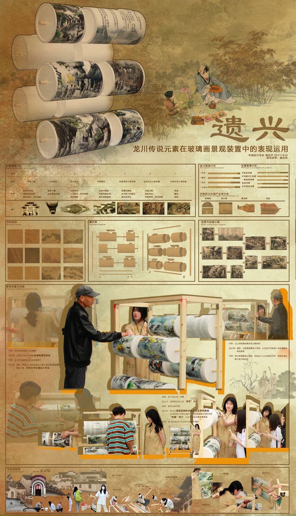 本次毕业设计聚焦城市更新与设计、乡村规划、公共空间设计、村民共建、非遗传承、园林植物生理生态、自然教育、植物遗传育种等多个前沿和热点领域,设计创作过程中,师生深入田间地头,村街巷里,从前期调研到毕业设计的最终落地,持续近一年时间。同学们在专业老师的悉心指导下,以丰富的媒介语言和巧妙的构思创意,用作品表达对艺术和设计的热爱、对乡村振兴的关注以及对时代创新的思考和回应,把论文设计做在了田间地头、写进了村居乡镇,落实到服务乡村振兴建设的具体实践。
