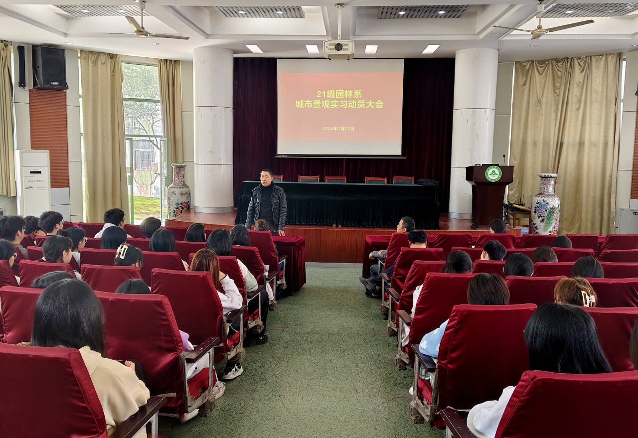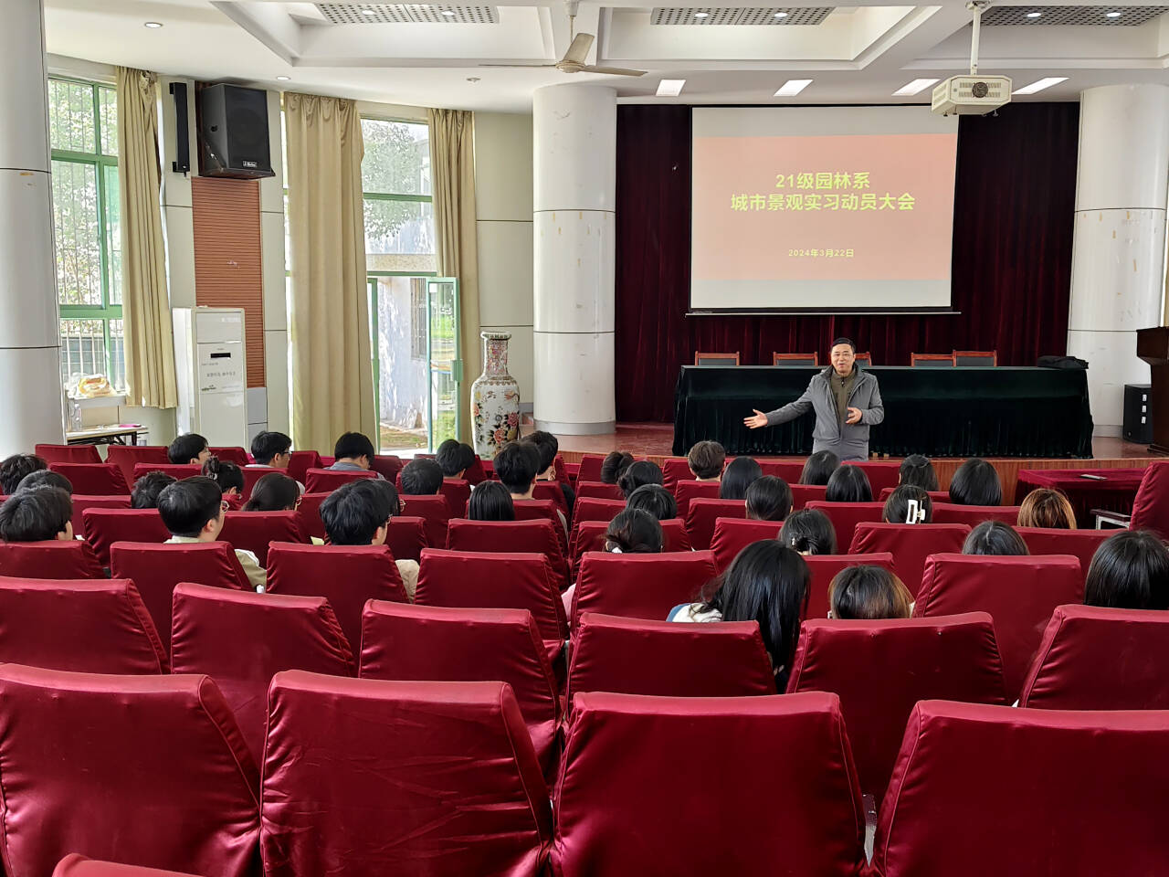 本网讯 3月22日下午,21级园林专业在林学楼一楼报告厅召开城市景观综合实习动员会。学院副院长陆小彪,系教学副主任范卉,实习指导老师许克福、孟艳琼、王雷宏,辅导员胡先业及2021级园林专业全体学生参加动员大会。
