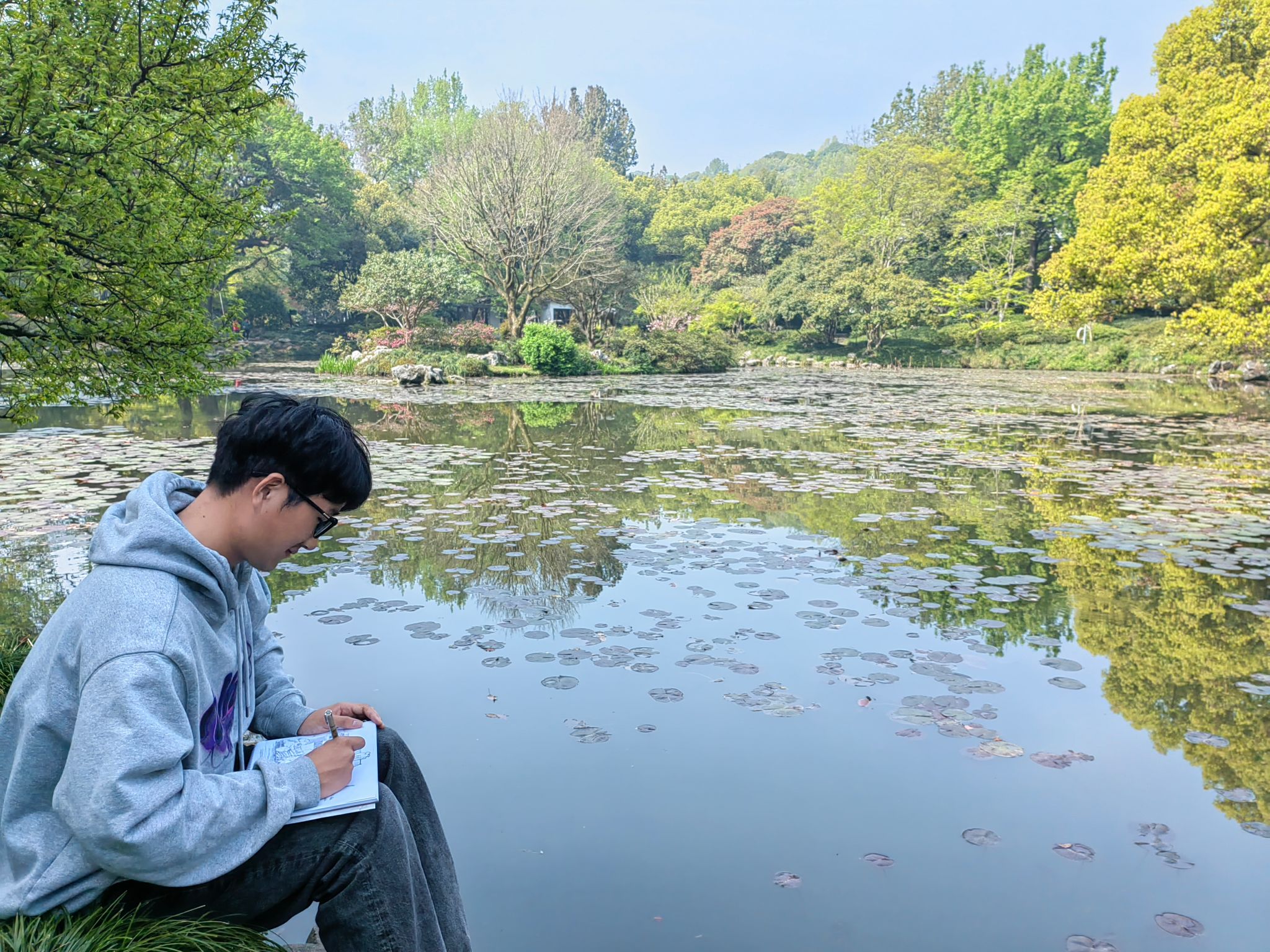 在返程的大巴上,同学们对这几天的所见所闻感悟颇深。“在调研过程中,我们深刻体会到了《园冶》中所说的‘虽由人作、宛自天开’。花港观鱼园林布局由牡丹园、鱼乐园、花港和大草坪四部分组成,在空间结构上的设计层次变化丰富。园中模山范水,巧于因借,并配置亭台楼阁,花廊水榭,自然空间组织开合收放,虚实相间,互为衬托,聚散有变。我们每换一个点位测绘,看到的都是不一样的景色风光,得到的都是不一样的空间体验,‘移步换景’莫若如此!21级园林专业的苏怡然表示。