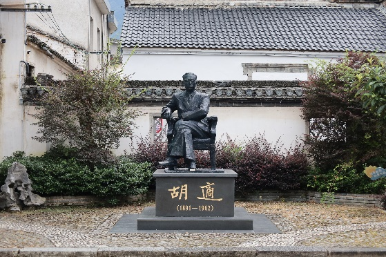 青山郁郁,流水潺潺,人文荟萃,名家辈出。随后,我们参观了胡适故居。上庄古镇,古朴安宁,民风纯朴。步入其间,游人三三两两,穿行于古街小巷之中。胡适故居坐落在上庄古镇深处,门头不大,门庭冷落,与“吾乡之鲁迅故里不可同日”而语。庭院内有胡氏同族后人自发担任讲解员,逐间为我们介绍介绍院内房内陈设、雕刻家学故事、徽州文化渊源、胡适先生之生平经历和毕生学术文化成就等等。“胡适先生在北平的时候,朋友送了他一盆兰花,先生想起了自己故乡满院的兰花,于是写下了那首著名的《希望》:我从山中来,带着兰花草...先生以兰花自喻,心中想起的是故乡的「大山」呀!”解说阿姨动情地诉说着胡适先生创作这首白话小诗的心境。