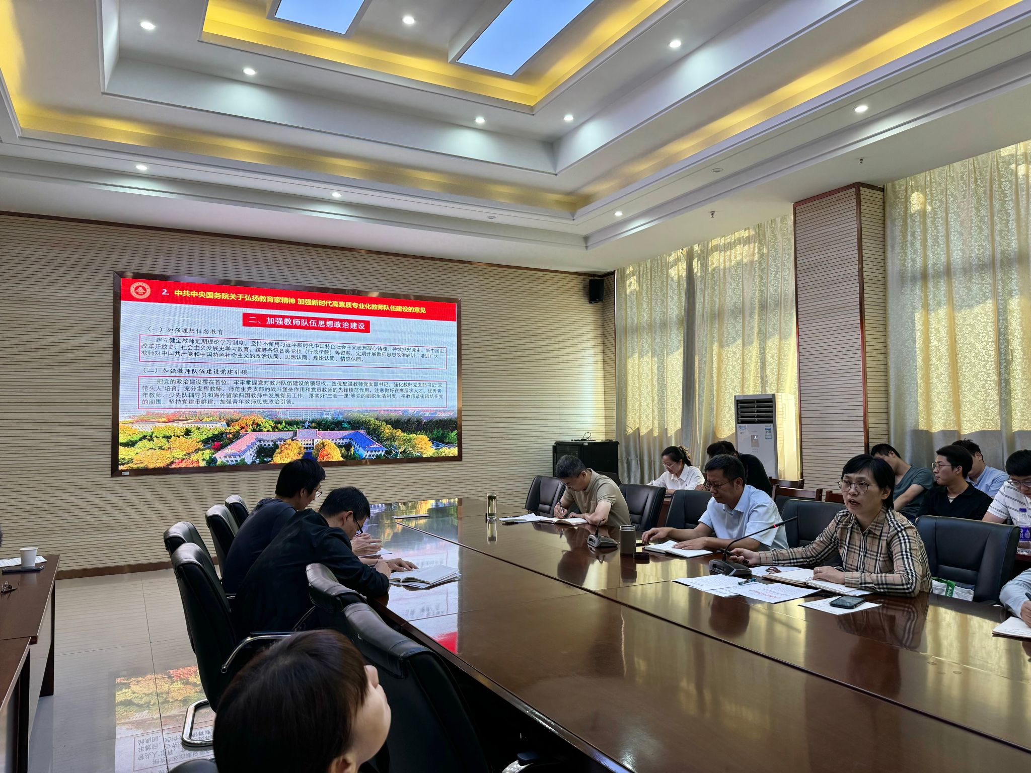 会议集中学习了习近平总书记在全国教育大会上的重要讲话精神、《中共中央国务院关于弘扬教育家精神加强新时代高素质专业化教师队伍建设的意见》。刘柳作了专题宣讲,她强调,全体教职工要始终牢记为党育人、为国育才的初心,始终牢记自身是党的教师、人民教师,始终践行中国特有的教育家精神,扛牢立德树人、强农兴农使命担当,全面贯彻党的教育方针,用心培养好强农先锋、社会英才;要坚持不懈用习近平新时代中国特色社会主义思想铸魂育人,在教育教学、科研指导、日常管理等工作中坚持以德立身、以德立学、以德施教、以德育德,不断提升自身的专业素养和道德水平,以高尚的师德风范教育和影响学生,以更加奋发有为的精神状态投身教育强国建设实践中;要学习领会宣传好学校理念识别系统,弘扬“奉献、创新、奋斗”的安农精神,践行“脚踏实地”的校训品质,坚守“敬敷、勤勉、弘道”的教风,为把学校建成一所深受社会尊敬的百年学府而努力奋斗。