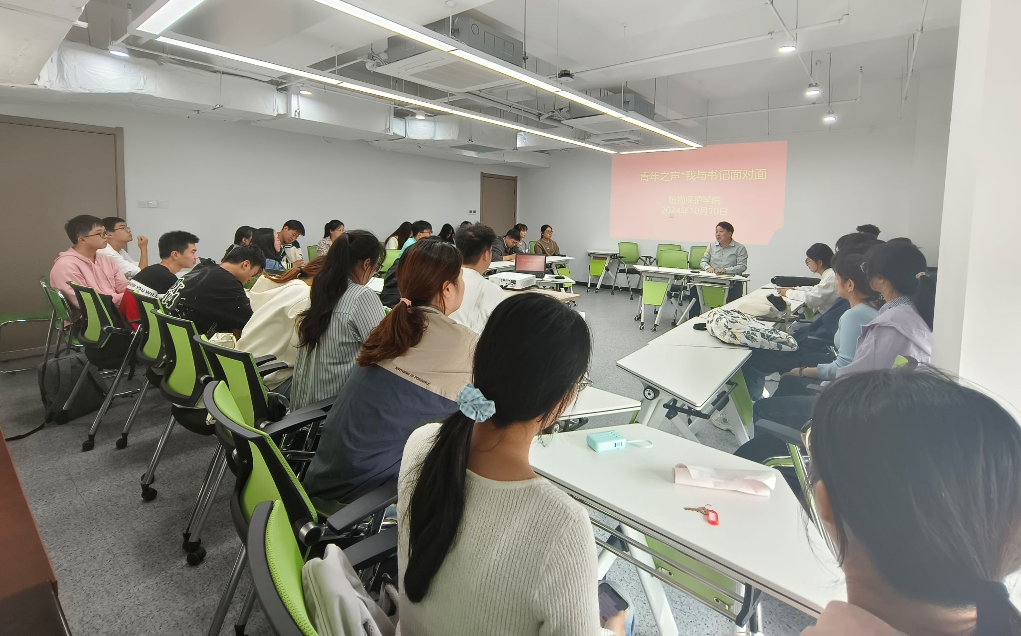 本网讯10月10日-12日,学院在中西部综合楼1213和研究生公寓B楼1405先后开展了3期青年之声--我与书记、院长面对面活动,学院党委书记刘柳、副书记汪小强和副院长方庆奎参加了本科生学年综测组织生活会和院级学生组织面对面活动。活动由各班级辅导员主持,班主任和各专业全体班委参加。