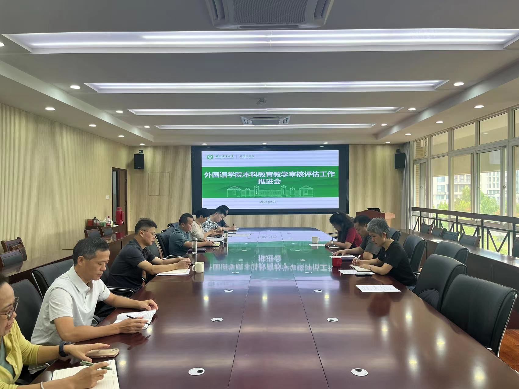 本网讯 为进一步推进本科教育教学审核评估工作顺利进行,9月26日上午,外国语学院在506会议室召开本科教育教学审核评估推进会,学院党委副书记、纪委书记姬惠惠,副院长张文静,系(部)主任,教学管理人员,辅导员以及实验中心负责人员参加会议。会议由副院长许宗瑞主持。