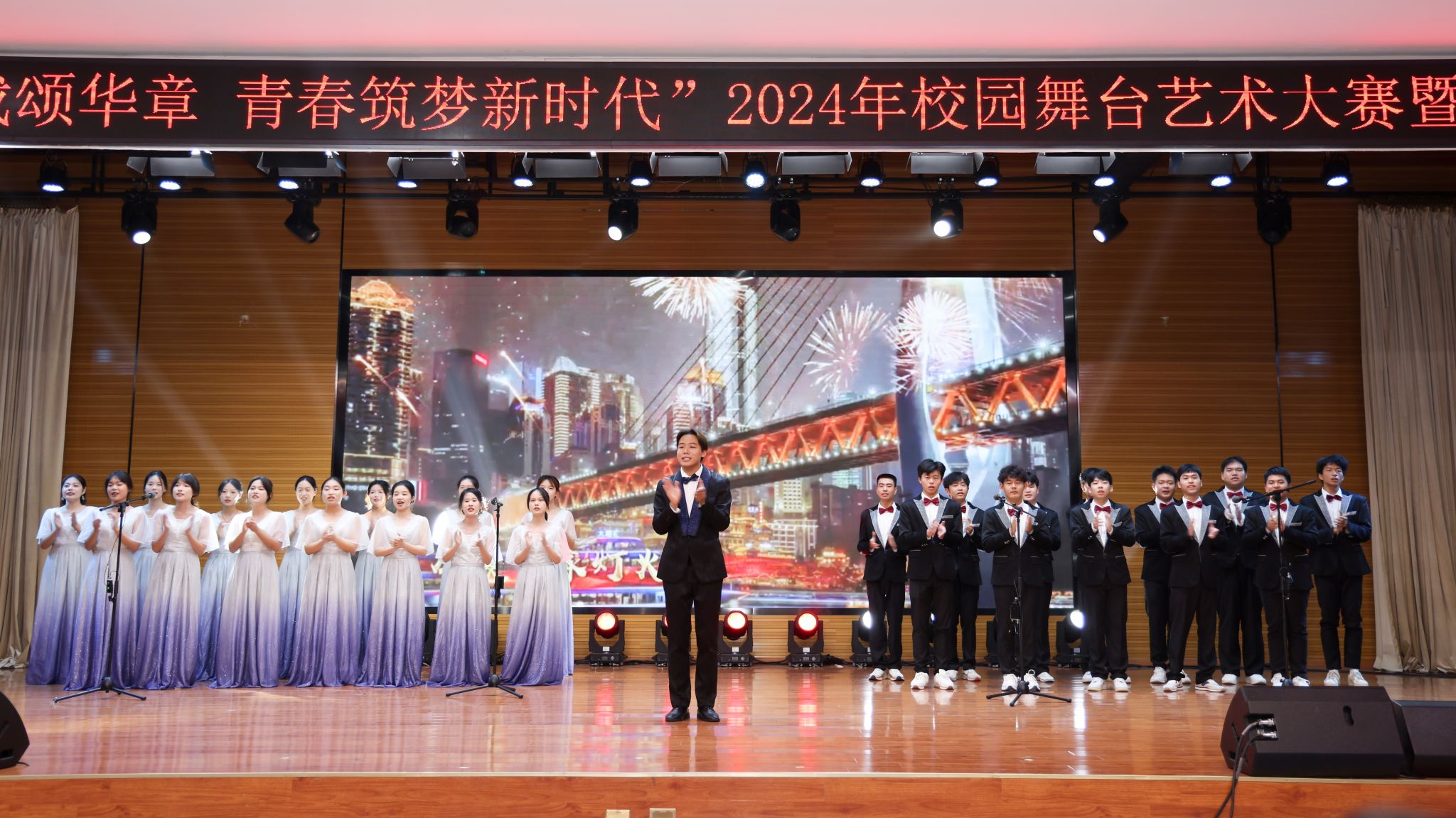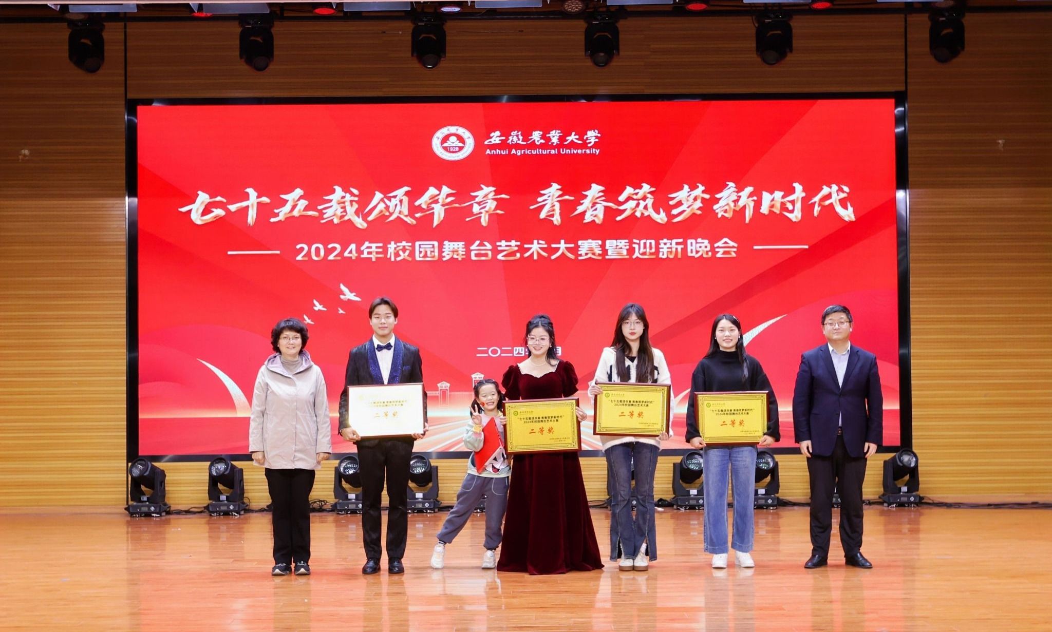 本网讯 10月28日晚,“七十五载颂华章 青春筑梦新时代”2024年校园舞台艺术大赛在欣苑四楼小礼堂成功落下帷幕,我院师生带来的朗诵与合唱节目—《归途》喜获二等奖。