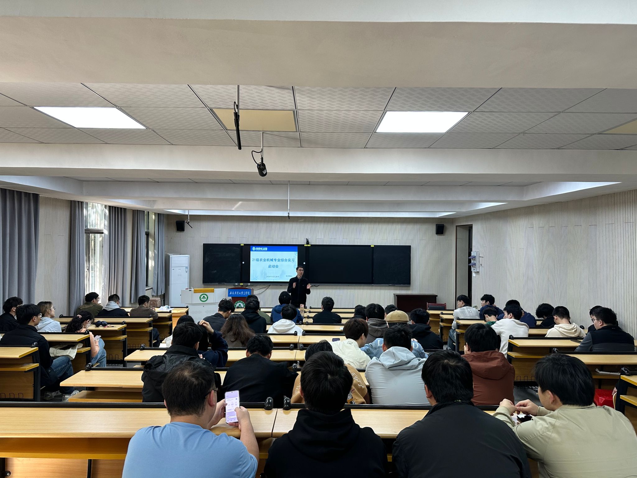 实习实践是人才培养非常重要的环节,近日正值秋收秋播农忙时节,工学院在10月30日—31日组织2021级农业机械化及其自动化专业学生开展农业机械专业综合实习。实习前,学院在三教101教室召开实习动员会,农业机械系主任秦宽、王荣炎老师及2021级农机专业全体同学参加。