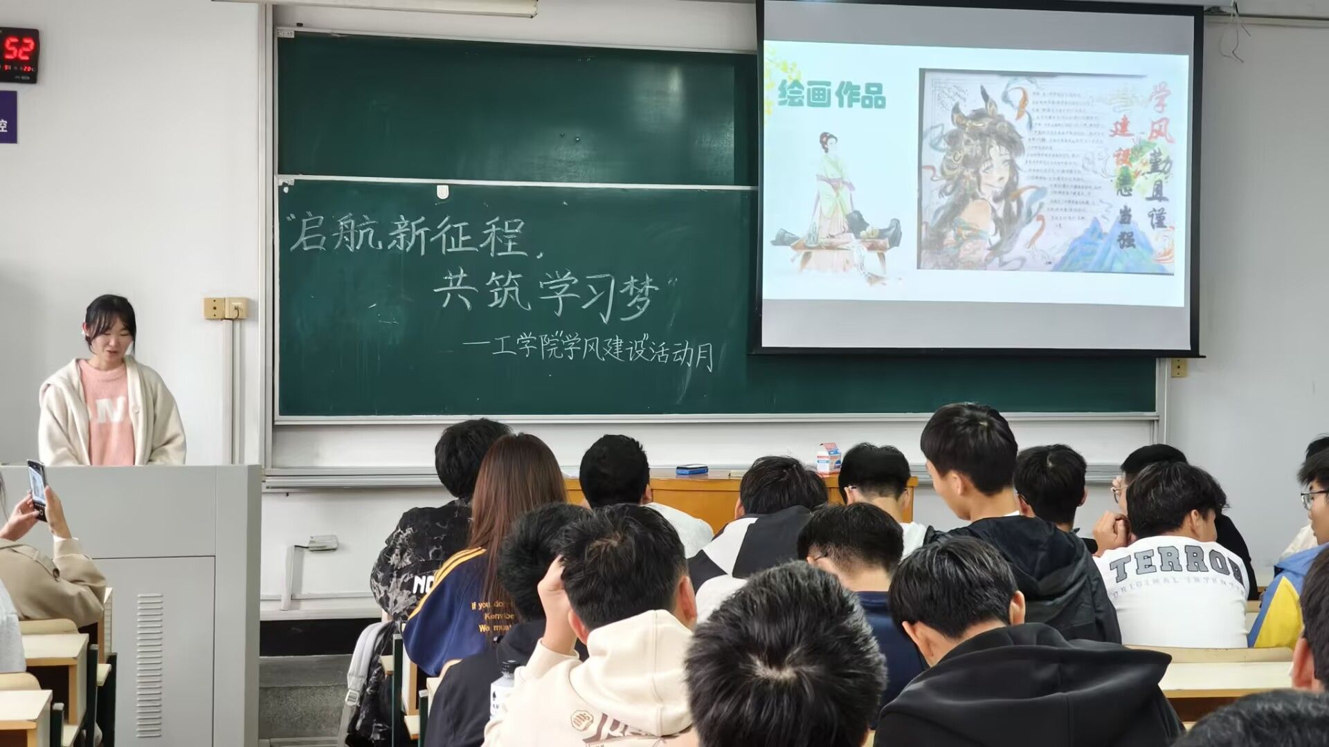 展才艺,艺作缤纷映华章。同学们结合自身特长,创作了书法、绘画等与“学风建设”相关的作品。一幅幅精美的作品展现了同学们对生活的热爱和对美的追求,也体现了班级文化的多元与包容。