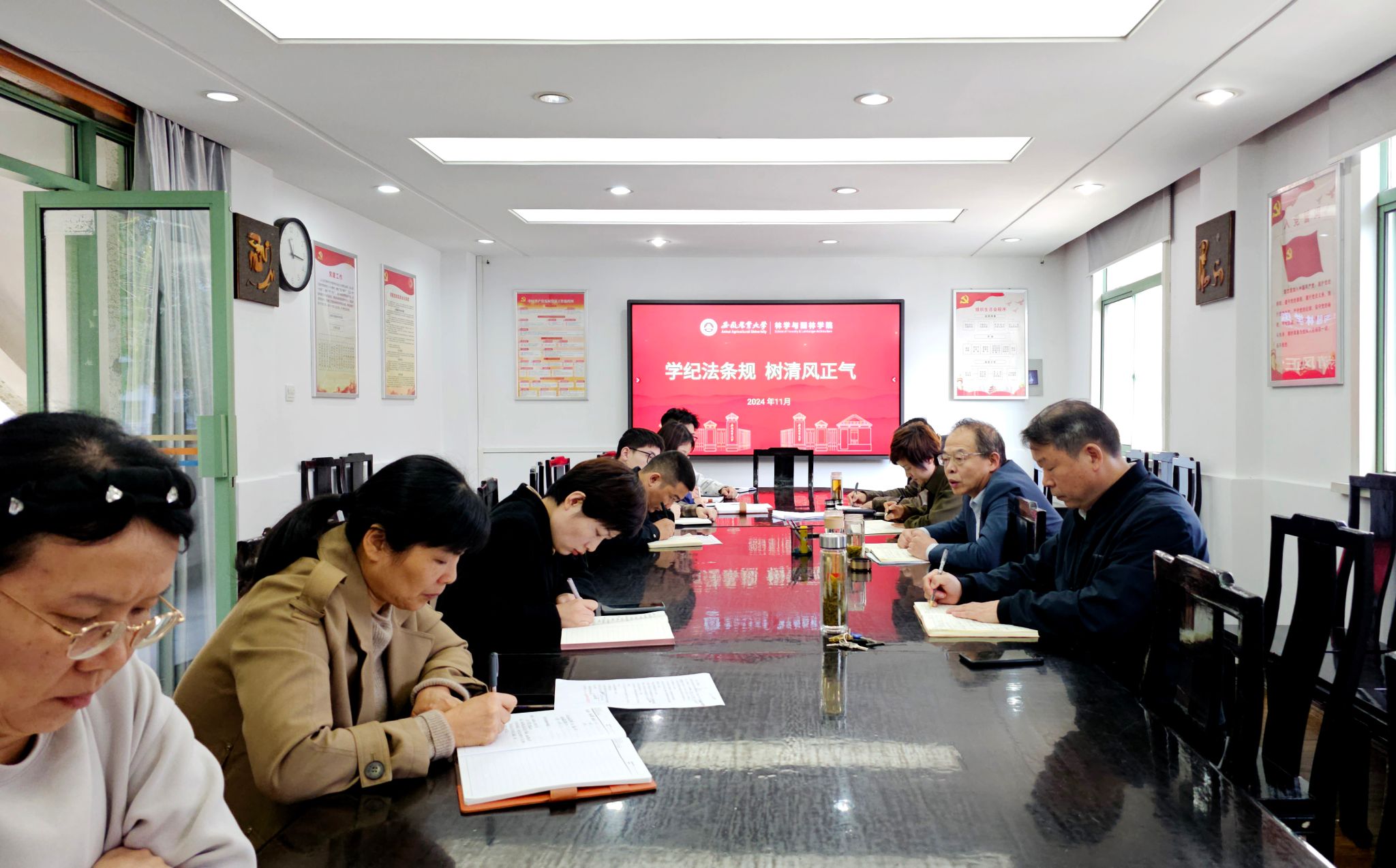 会议强调,学院领导班子要带头学习和贯彻纪法条例,发挥表率作用,切实履行好主体责任。纪委委员要强化监督执纪问责职能,以条例为标准,对学院内可能出现的违规违纪行为保持高度警惕,做到早发现、早干预、早处理。办公室全体成员在日常工作中要严格落实各项规定,确保学院行政工作的规范化、廉洁化,树立好办公室“窗口”形象,把纪法条例的学习和实际工作紧密结合,在全院上下营造风清气正的良好氛围,推动学院各项事业健康有序发展。(图文/白舒豪 编辑/胡先业 预审/夏利明 审核/江正君)