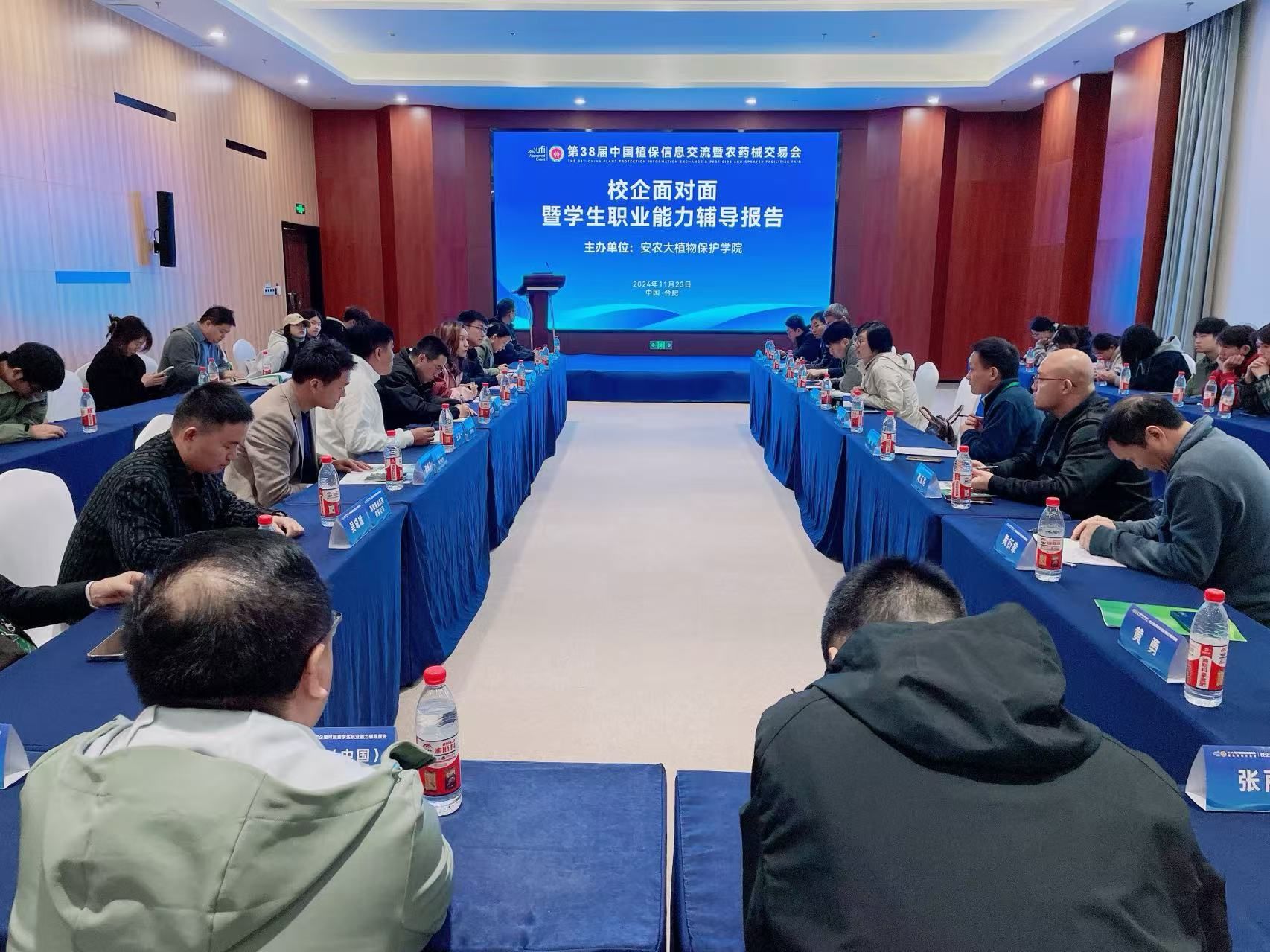 本网讯 11月23日,植物保护学院“校企面对面”暨学生职业能力辅导报告会在滨湖国际会展中心西会议区210室成功举办。先正达(中国)投资有限公司等10家企业负责人,植物保护学院党政领导、师生代表等共计50余人参加了本次报告会。报告会由植物保护学院党委书记刘柳主持。