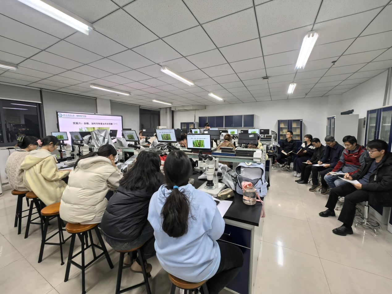 本网讯 为加强青年教师队伍建设,提高教学水平和技能,促进教学经验交流,植物保护学院昆虫学系组织开展基层教学组织课堂教学观摩活动。11月18日晚上,副院长方庆奎、昆虫学系主任李茂业带领近五年入职的青年教师在中西部综合楼936教室开展了青年教师实验教学观摩活动。