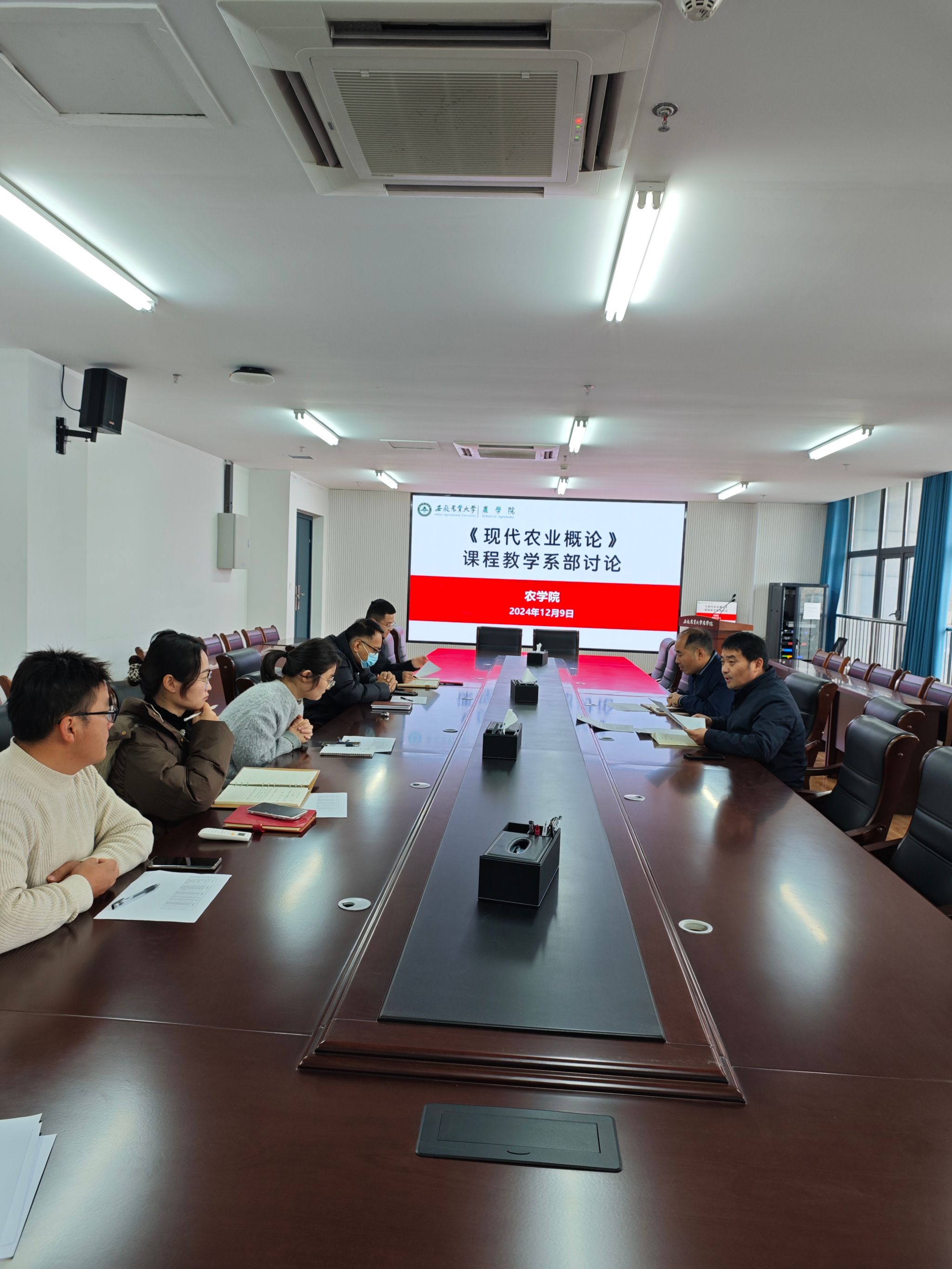 2024年12月9日,农学院在朝阳楼208会议室召开《现代农业概论》课程教学系部讨论会。农学系陈翔、马尚宇、张付贵三位老师,作物育种与种子科学系黎珉、陈璨、高慧慧三位老师参加了会议讨论,会议由农学院教学副院长卢杰主持。