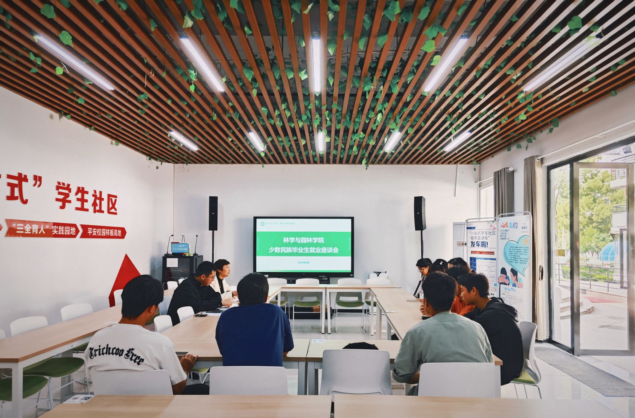 本网讯 为扎实推进2024届少数民族毕业生就业工作,了解少数民族毕业生求职过程中的困惑与需求,进一步加强学院少数民族毕业生就业指导与服务工作,4月23日中午,林学与园林学院在“一站式”学生社区召开了2024届少数民族毕业生就业工作座谈会。学院党委副书记夏利明、专职辅导员、少数民族毕业生参加会议。