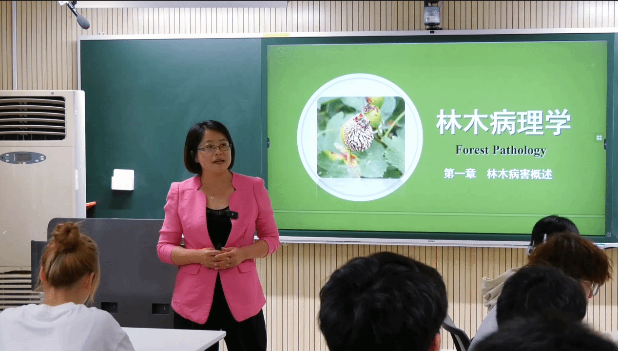 陈名君讲授的《林木病理学》是林学专业核心课之一,她围绕“绿水青山、生态为基,育卓越新农人;混合教学、融合创新,建时代特色课”的教育理念,将课程内容分散的思政元素整理糅合,形成了“绿水青山、理实结合、润物无声、知行合一”的思政教育主线,贯穿教学全过程。课程以培养基础扎实、具有创新意识和创新能力、“一懂两爱”的新时代林业专门人才为方向,以知识传授、能力培养和品质塑造为目的。
