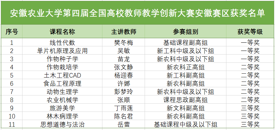 近日,由安徽省教育厅主办、安徽财经大学承办的第四届全国高校教师教学创新大赛安徽赛区比赛圆满落幕。我院林学系教师陈名君及其团队经过校级层层选拔,获得省赛资格,最终斩获安徽赛区三等奖。