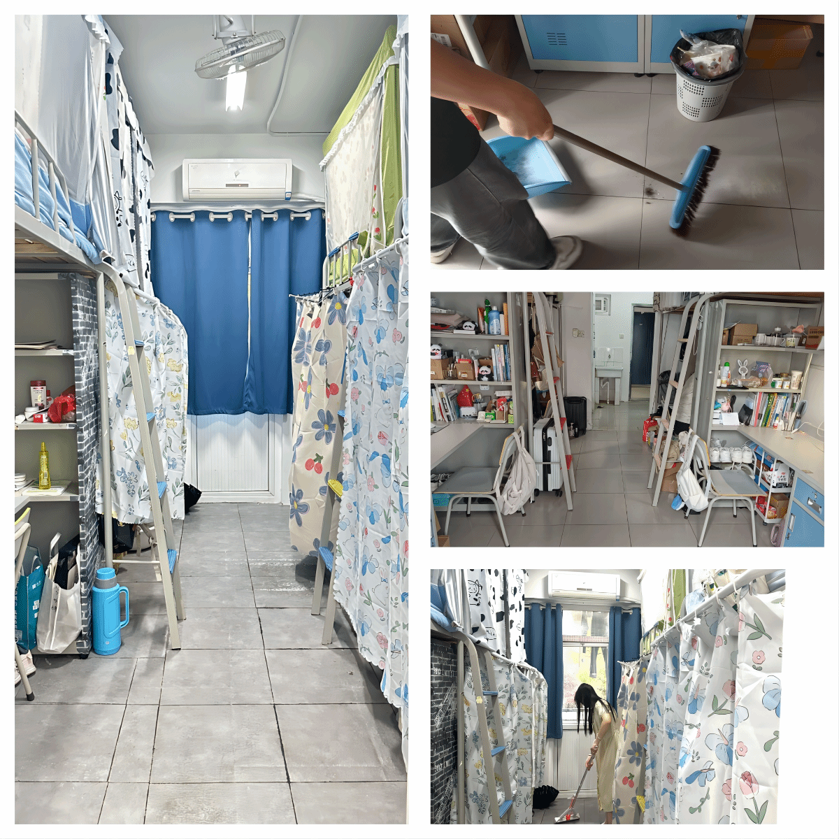 学院组织开展以“最美寝室”为主题的寝室劳动周活动,组织全院学生开展寝室卫生清扫、个人物品收纳等形式多样的寝居劳动活动,共同营造整洁、安全、温馨、舒适、友爱的寝室环境,培养学生爱寝室、讲卫生、重健康的好习惯。学院全体同学积极响应、认真打扫、细心整理,经过此次活动,学院宿舍整洁程度整体提高,学生劳动热情高涨,展现出了良好劳动精神风貌。
