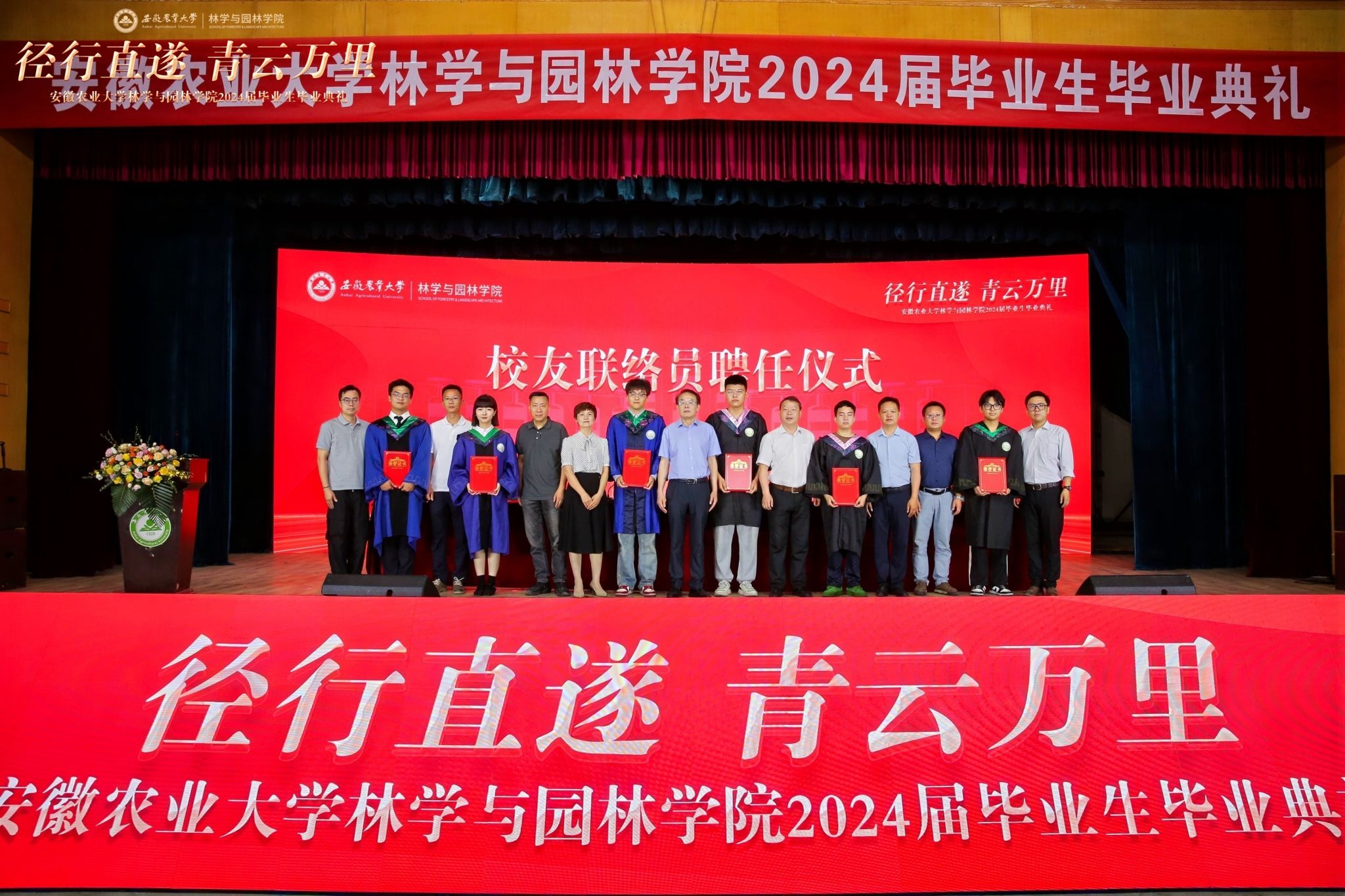 现场举行了校友联络员聘任仪式,表彰了2024届省级、校级优秀毕业生,同时为2024届全体毕业生颁授了毕业纪念品并合影留念。