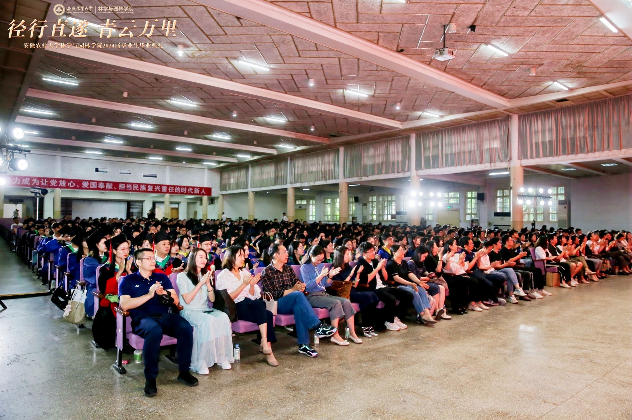 院长徐斌回顾了2024届毕业生在校的不平凡经历,以一名学长的身份,从他最熟悉的树木与森林亲切机遇全体毕业生,做人要保持“木”的本真,铆钉目标勇毅前行;处世要锤炼“林”的品格,包容兼蓄众行致远;干事要追求“森”的境界,厚植情怀堪当重任,希望同学们带着自信、带着梦想,掌好人生之舵,奔赴星辰大海。